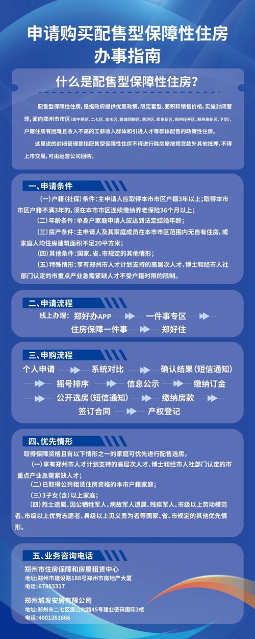 如在申請過程中有任何疑問,可以撥打鄭州市住房保障和房屋租賃中心咨詢電話:0371-67883316、0371-67883317;鄭州市城發(fā)安居有限公司咨詢電話:4001261666。咨詢時間為配售項目申請期間:8:30至20:00,其他時間(工作日):8:30至18:00。