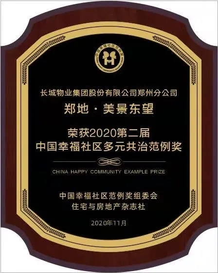 鄭地·美景東望榮獲“2020第二屆中國幸福社區(qū)多元共治范例獎(jiǎng)”