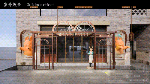 麥陌的門店設(shè)計,更是一場將商代青銅文明與烘焙生活完美融合的視覺盛宴。建筑整體以金色與木色為主,墻上的裝飾、立柱上的浮雕,像是從商代青銅器上拓印而來。店內(nèi)面包陳列臺選用原木與石材,呼應(yīng)“麥”的自然本真。烘焙區(qū)采用開放設(shè)計,可以預見,烤爐的麥香將從這棟建筑飄至街區(qū)每一個角落,讓行人在不知不覺中放慢腳步。